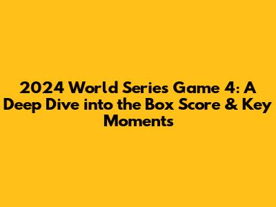 Hey baseball fanatics! Are you ready to dive deep into the thrilling Game 4 of the 2024 World Series? This was a game filled with nail-biting moments, clutch plays, and unforgettable performances. I'm talking about dissecting the box score, analyzing the key plays, and breaking down the strategies that shaped the outcome. This article is your ultimate guide, and together, we'll relive the excitement, the tension, and the pure joy (or heartbreak, depending on your team!) that Game 4 delivered. So, buckle up, grab your peanuts and cracker jacks, and let's get started. We'll be looking at the final score, the individual player stats, the pitching matchups, and those crucial turning points that defined the game. Whether you're a die-hard fan, a casual observer, or just someone who loves a good sports story, this is where you need to be. Get ready to understand what really happened on the field. The 2024 World Series Game 4, you won't want to miss a thing. The game was an absolute rollercoaster, and we're going to break down every single detail, from the first pitch to the final out, ensuring you have a complete understanding of this epic battle.