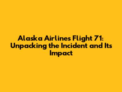 Alaska Airlines Flight 71: What You Need To Know