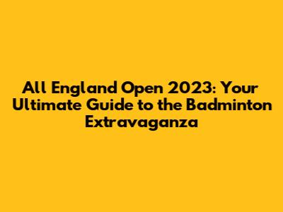 Unveiling the All England Open 2023 Schedule: Dates and Venue