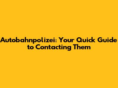 Autobahnpolizei: Your Quick Guide To Contacting Them