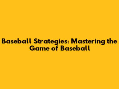 Baseball Strategies: Mastering The Game Of Baseball