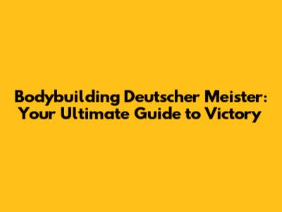 Bodybuilding: Deutscher Meister - Your Guide To Success