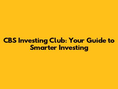 CBS Investing Club: Your Guide To Smarter Investing