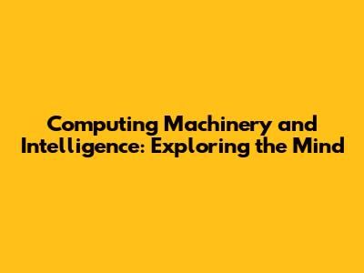 Computing Machinery And Intelligence: Exploring The Mind