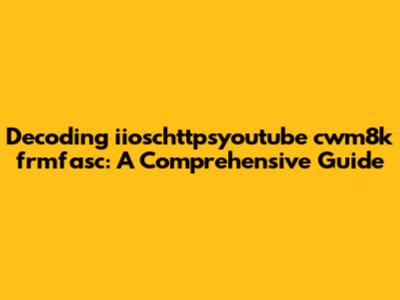 Decoding Iioschttpsyoutube Cwm8k Frmfasc: A Comprehensive Guide
