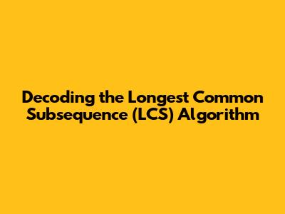 Decoding The Longest Common Subsequence (LCS) Algorithm