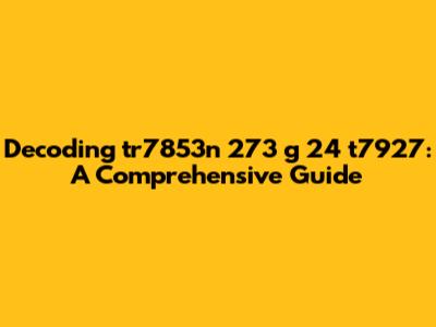 Decoding Tr7853n 273 G 24 T7927: A Comprehensive Guide