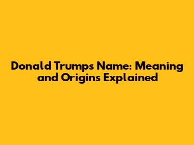 Donald Trump's Name: Meaning And Origins Explained