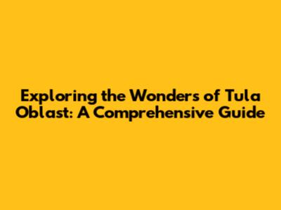 Exploring The Wonders Of Tula Oblast: A Comprehensive Guide