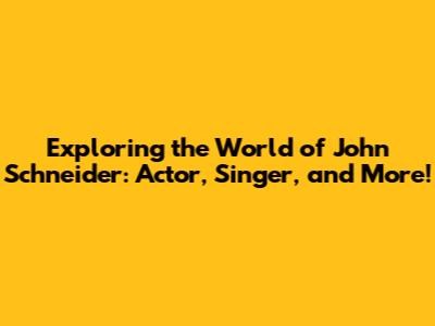Exploring The World Of John Schneider: Actor, Singer, And More!