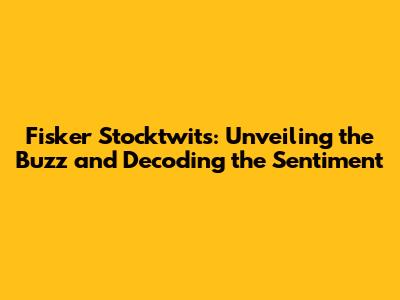 Fisker Stocktwits: Latest News, Sentiment, And Investment Insights