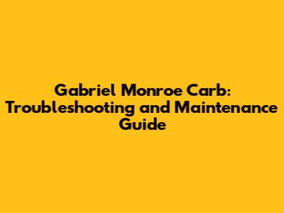 Gabriel Monroe Carb: Troubleshooting And Maintenance Guide