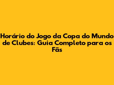 Horário Do Jogo Da Copa Do Mundo De Clubes: Tudo Que Você Precisa Saber