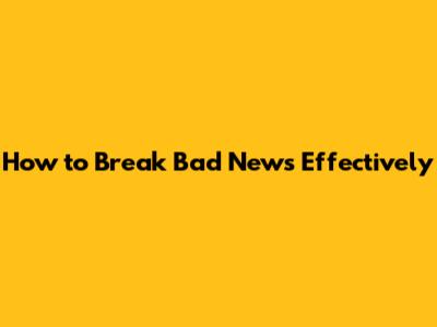 How To Break Bad News Effectively