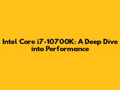 Intel Core I7-10700K: A Deep Dive Into Performance