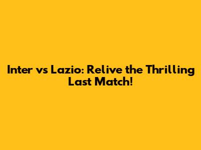 Inter Vs Lazio: Relive The Thrilling Last Match!