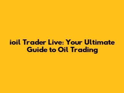 Ioil Trader Live: Your Ultimate Guide To Oil Trading