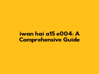 Iwan Hai A15 E004: A Comprehensive Guide