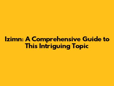 Izimn: A Comprehensive Guide To This Intriguing Topic