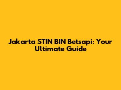 Jakarta STIN BIN Betsapi: Your Ultimate Guide