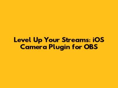 Level Up Your Streams: IOS Camera Plugin For OBS