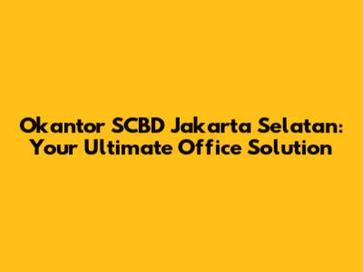 Okantor SCBD Jakarta Selatan: Your Office Solution