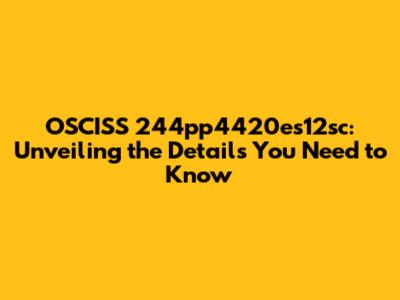 OSCISS 244pp4420es12sc: What You Need To Know