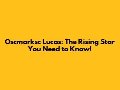 Oscmarksc Lucas: The Rising Star You Need To Know!