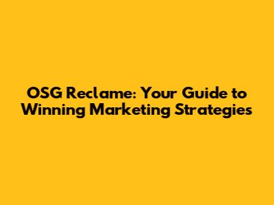 OSG Reclame: Your Guide To Winning Marketing Strategies