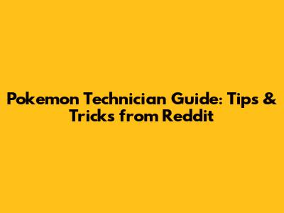 Pokemon Technician Guide: Tips & Tricks From Reddit