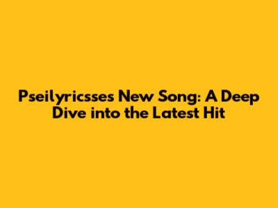 Pseilyricsse's Latest Hit: Unveiling The New Song