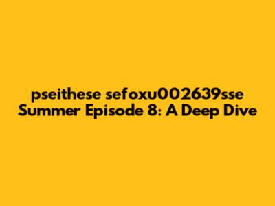 Hey guys, let's dive into the amazing world of pseithese sefoxu002639sse summer ep 8! This episode was a real banger, and we're going to break down everything that made it so special. From the music to the visuals, and the overall vibes, we'll explore why this episode resonated with so many people. We'll also analyze the key moments, discuss character development, and talk about the possible implications for the future. So, grab your snacks, get comfy, and let's get started!