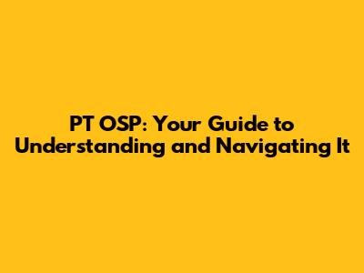 PT OSP: Your Guide To Understanding And Navigating It