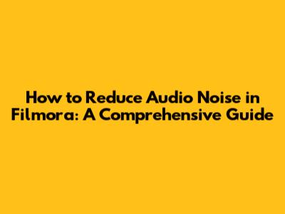 Reduce Audio Noise In Filmora: A Comprehensive Guide