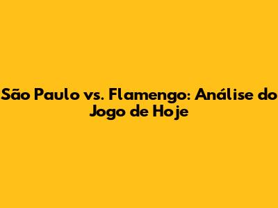 São Paulo Vs. Flamengo: Últimas Do Jogo De Hoje