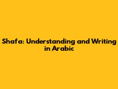 Shafa: Understanding And Writing In Arabic