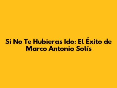 Si No Te Hubieras Ido: El Éxito De Marco Antonio Solís