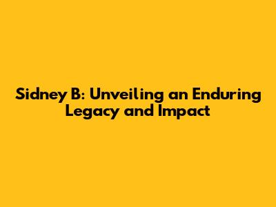 Sidney B: Unveiling An Enduring Legacy And Impact