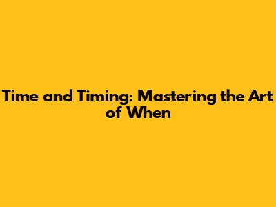 Time And Timing: Mastering The Art Of When