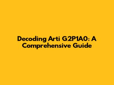 Unlocking The Code: Arti G2P1A0 Explained