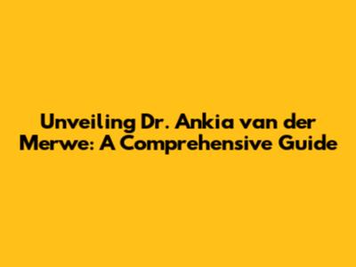Unveiling Dr. Ankia Van Der Merwe: A Comprehensive Guide