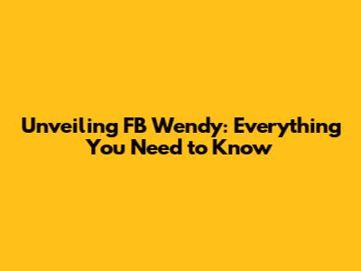 Unveiling FB Wendy: Everything You Need To Know