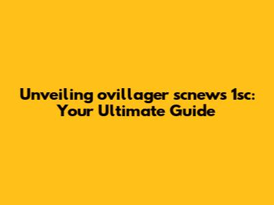 Unveiling Ovillager Scnews 1sc: Your Ultimate Guide