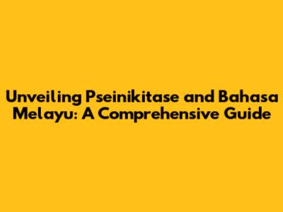 Unveiling Pseinikitase And Bahasa Melayu: A Comprehensive Guide