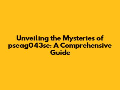 Unveiling The Mysteries Of Pseag043se: A Comprehensive Guide