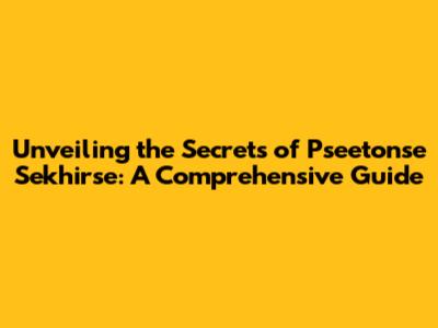 Unveiling The Secrets Of Pseetonse Sekhirse: A Comprehensive Guide