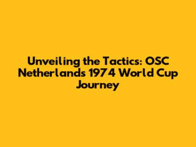 Unveiling The Tactics: OSC Netherlands' 1974 World Cup Journey