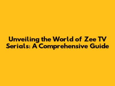 Unveiling The World Of Zee TV Serials: A Comprehensive Guide