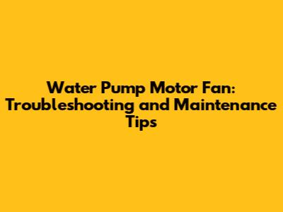 Water Pump Motor Fan: Troubleshooting And Maintenance Tips