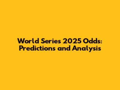 World Series 2025 Odds: Predictions And Analysis